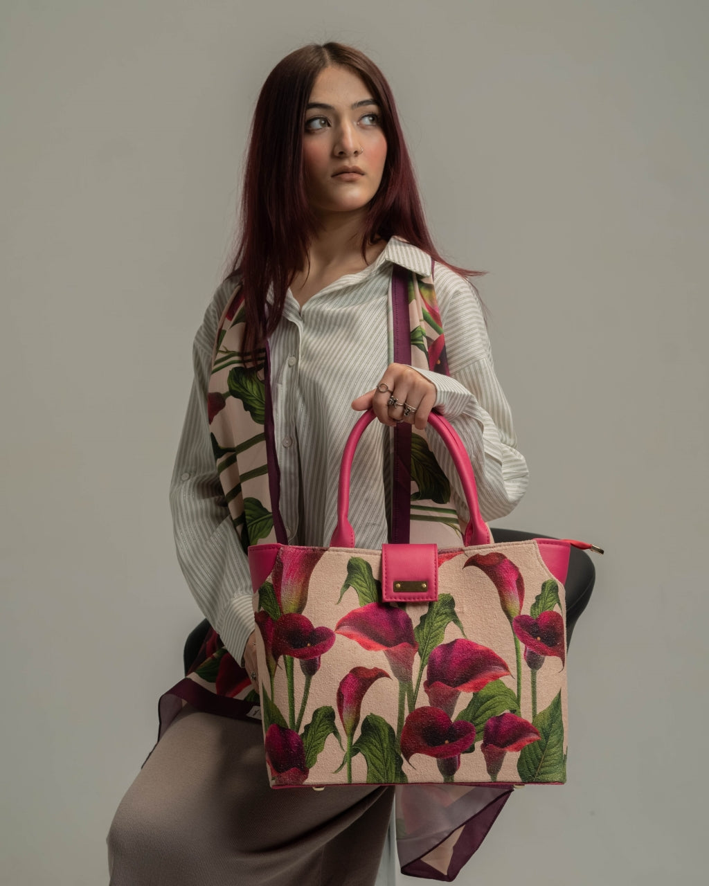 "I believe a woman’s accessories should be as multifaceted as her life. Rouge de Fleur was born from a desire to merge the structural integrity of a briefcase with the soft flair of a silk scarf. It is my invitation to you to embrace your own duality—to be powerful, yet poised."